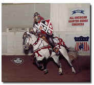 From October 4th-24, 1999, Columbus, Ohio hosted the All American Quarter Horse Congress with over 8,000 Quarter Horses from the United States, Europe and Latin America and one Spanish-Norman horse from Connecticut competing. Hamid Hill Farm's Spanish-Norman stallion Romántico H.H.F., owned by Allen and Linda Hamid of Woodbury, Connecticut won 4th place in the Pfizer Open Freestyle Reining competition, the popular competition sanctioned by the National Reining Horse Association. Romántico H.H.F. was exhibited by his trainer Garry McAllister of Harwinton, Connecticut. To the music of "Ride of the